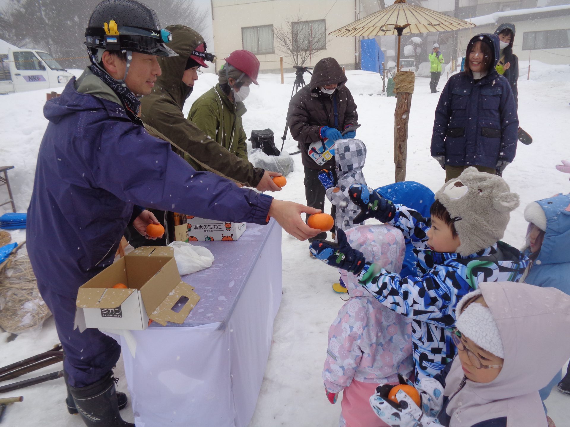 最後には関係者の方からご利益のある大きなみかんを一つずつ、いただきました。