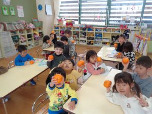 いただいたみかんと「ハイポーズ!」
