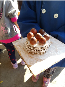 「みてみてーどんぐりケーキだよ」
