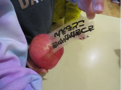 リンゴを見て「Nさんのリンゴだ!」と気付いていました。