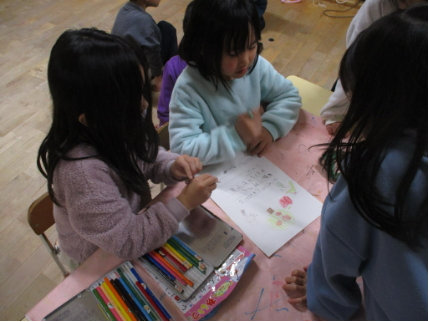 後日、Nさんの畑の近くへ散歩へ行くことを知った子どもたちは「Nさんにありがとうの手紙を書きたい」と手紙を書き始めました。書いた手紙はみんなで届けに行ってきました。