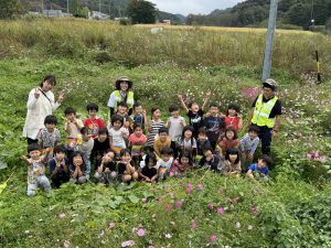 地元のこすもす街道へ年少、年中、年長クラスで 散歩に行きました
