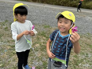 花びらの色の違いや、におい、風に揺れる姿などさまざまな発見を友達や保育士と共有し合う楽しい時間となりました。