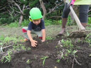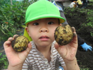 自分でじゃがいもを収穫し、その喜びや達成感を味わったり季節の野菜を知り、食への興味を深められたりするといいな。と思いました。