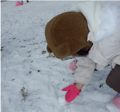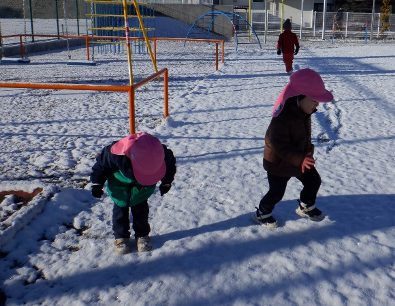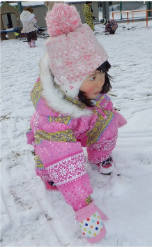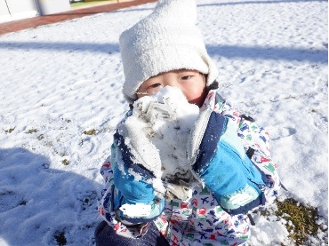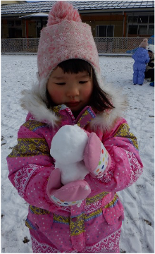 「できたよ!」と言って満面の笑みをしながら、自分で頑張って作った雪だるまを見せてくれました。
