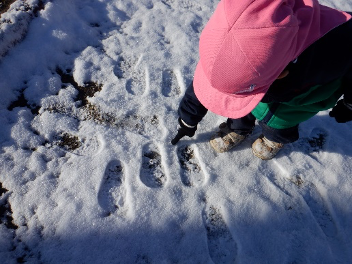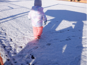 「ちょっと行ってくるね!」とまだ足跡がついていない園庭に駆け出していきます。