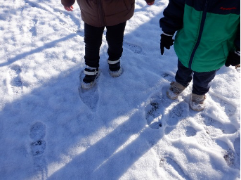 「みて!これ○○の足跡だよ!こっちの足跡はだれのかなぁー。」