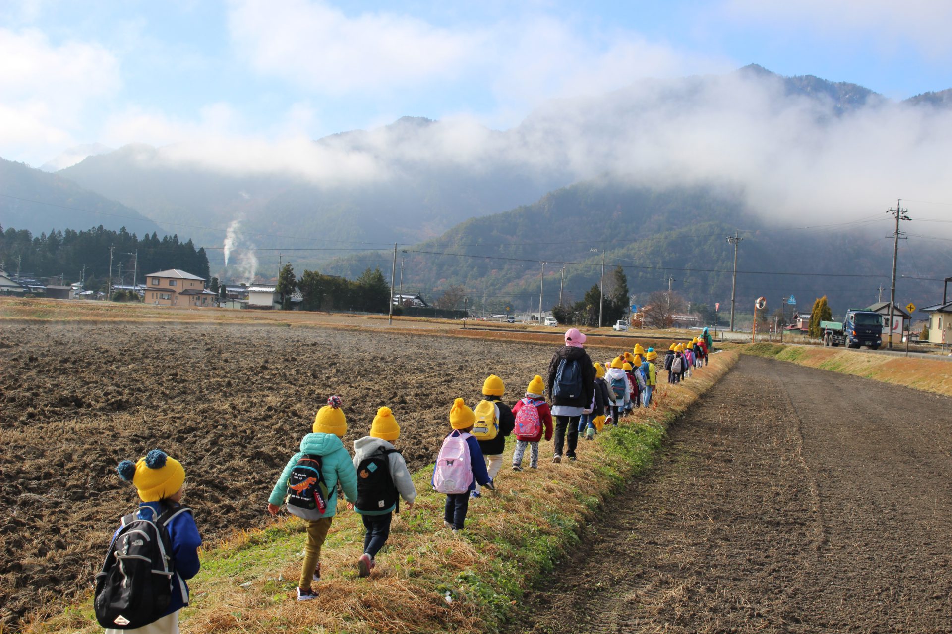 肌で冬の訪れを感じ、周囲の景色も見渡しながら、歩くことを楽しんだ子どもたちでした。