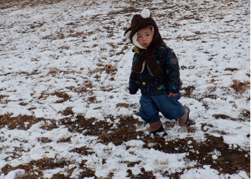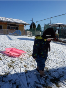 「白!」と、外を指さす子どもたち…初めての雪遊びに、ワクワクが止まりません。
