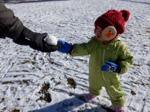 「雪触ってみる?」と、渡されると恐る恐る触ってみたり