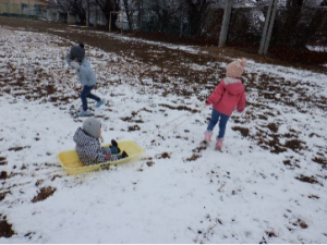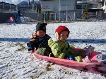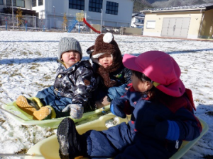 「わ~!!」「楽しい~!」と、ソリ遊びを満喫したりする子どもたちです。