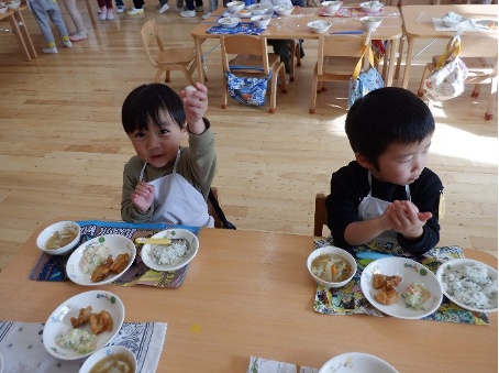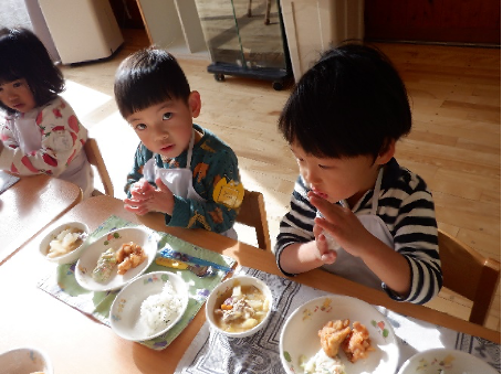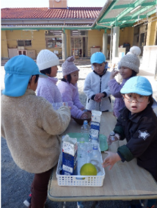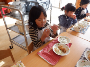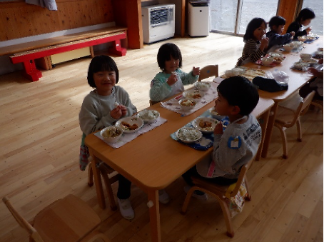 こども園のみんなで、一緒に味わいました。「おいしいね!」