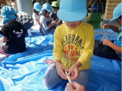 「ほらみて!こんなにいっぱいたまってきたよ!!」さすが年長さん、コツをつかめばもう自分のものです!