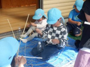 「やってみたーい!」年少さんも(左側)年中さんも(右側)、気になって、みんなで挑戦!