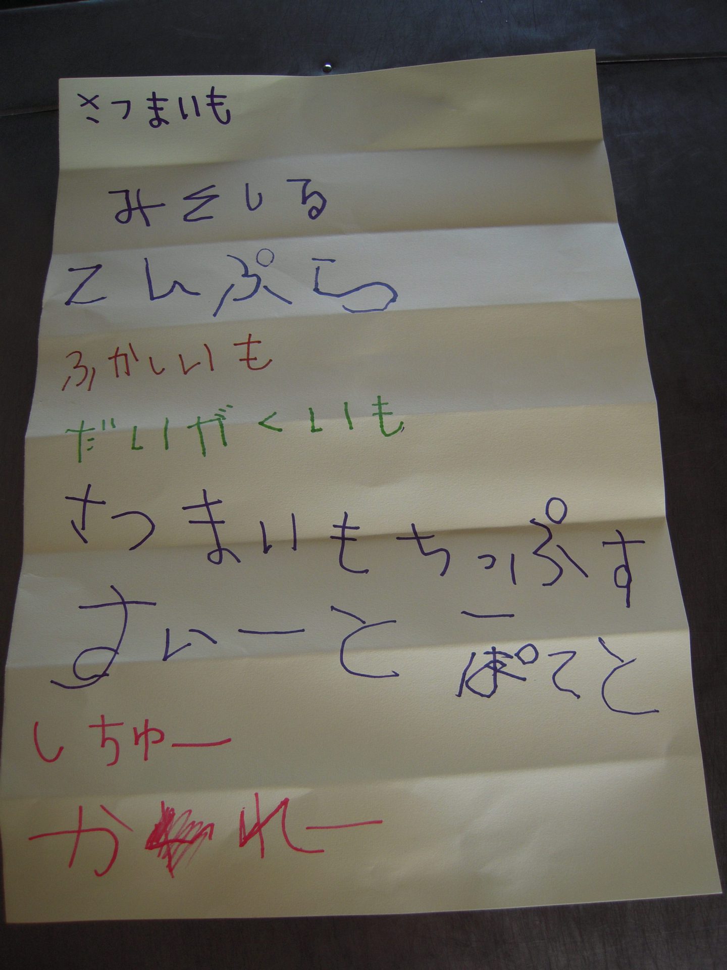 これから、みそ汁と天ぷらも提供予定ですが、保育園のさつま芋は足りるかな・・・
