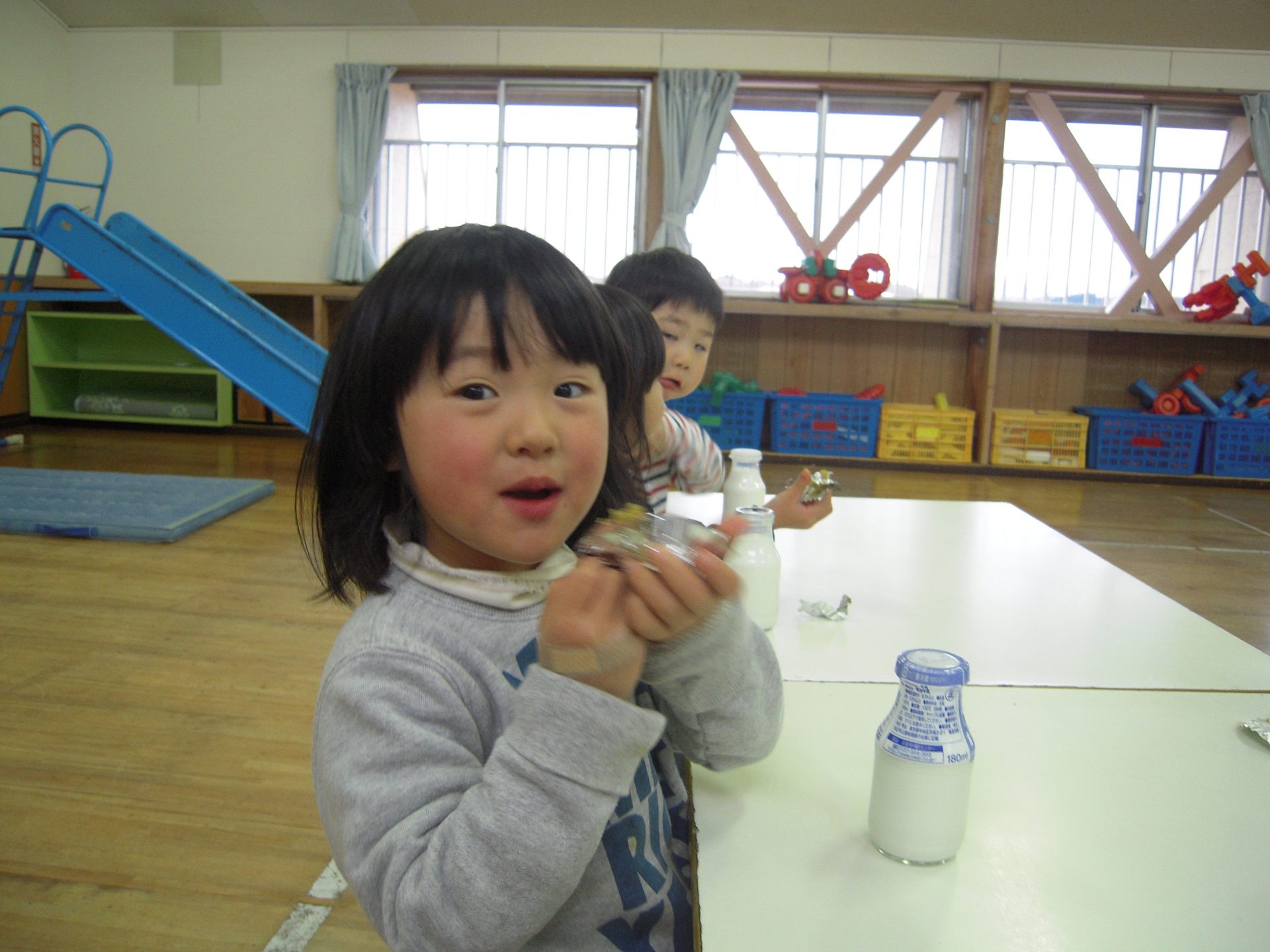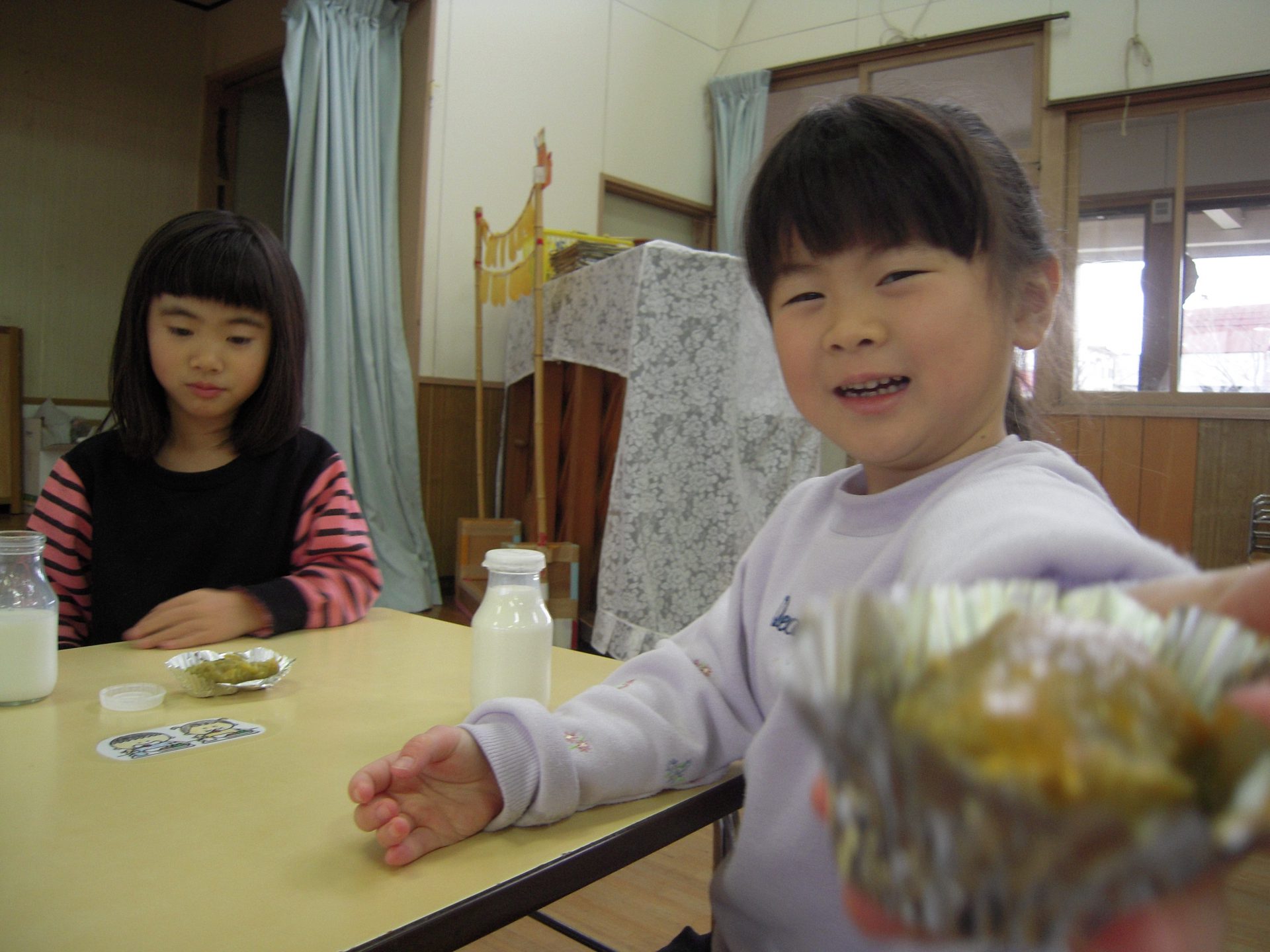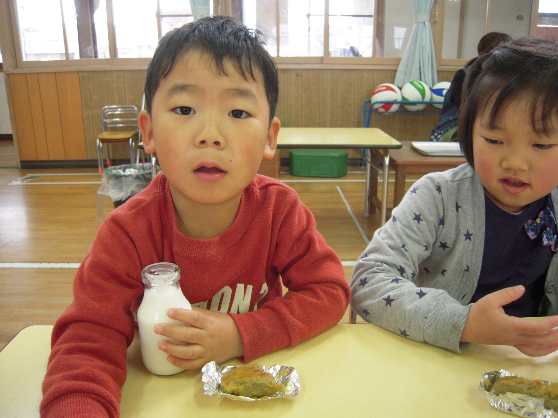 初めて食べる子も多い様子の未満児さん。ひと口食べてみるとおいしかったようで、パクパクと食べ進めていました。
