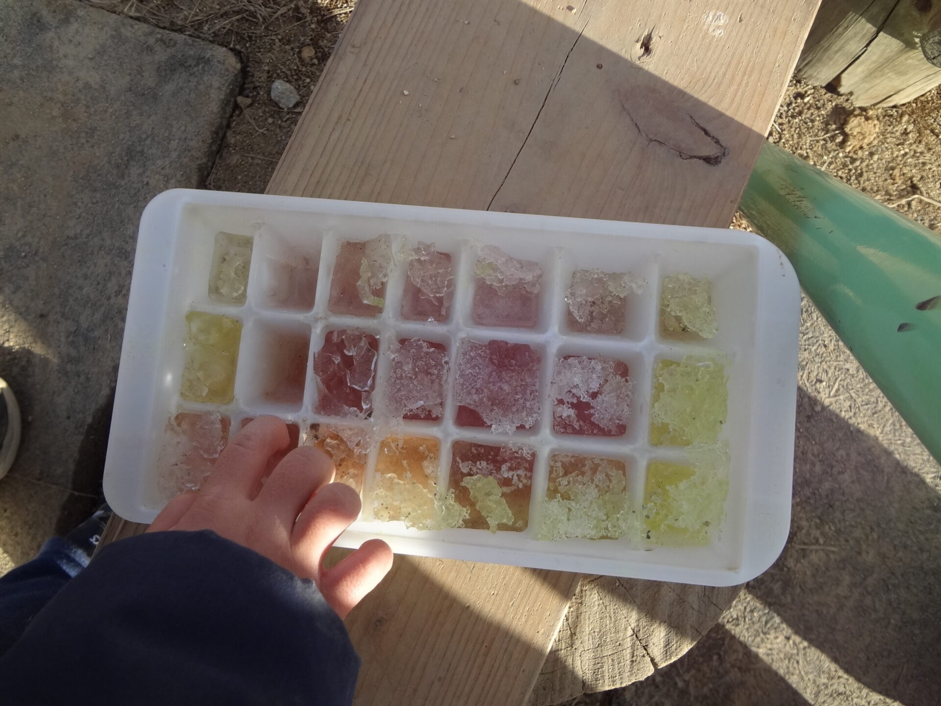 翌日見に行くと「わぁきれいな色の氷になった!!」