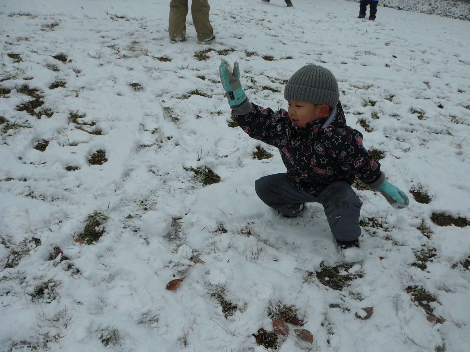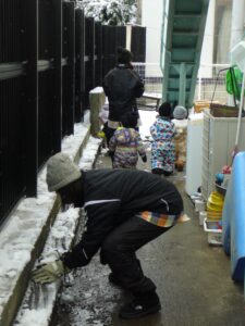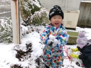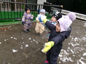 集めた雪をばらまきます。つめたーい!けど、面白い!みんなで、何度も楽しみました。他にも・・・