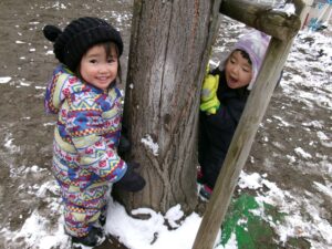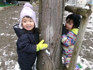 いないいないばあをして遊んだりしました。雪の中で遊ぶの、楽しいね♪