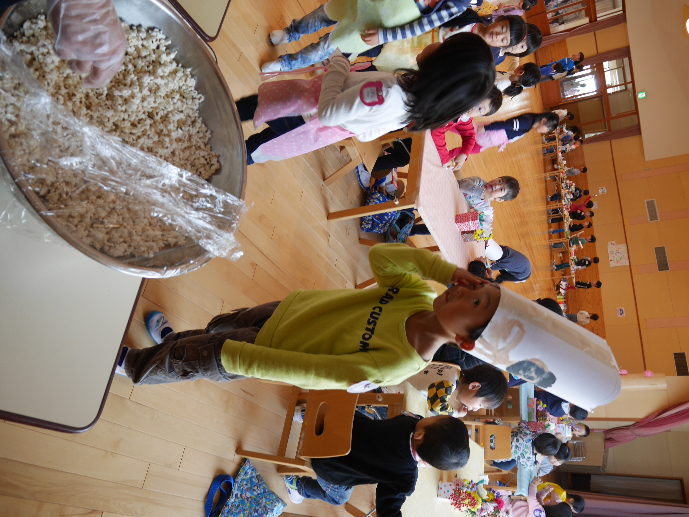 ポップコーンやさん。年長児が種をまいて育てたポップコーンだよ。