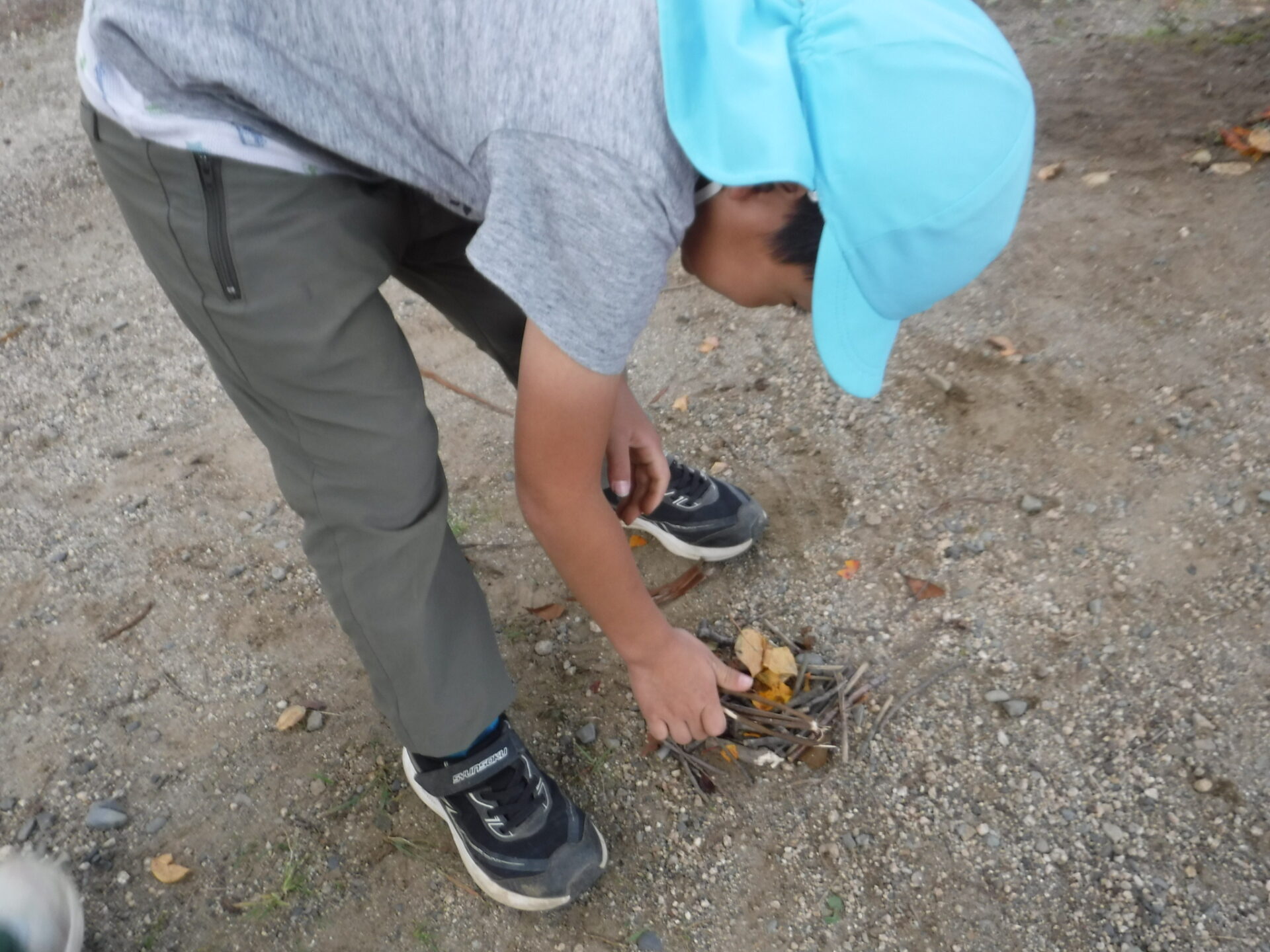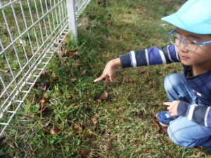 自然物の中には危険が伴うものもあるということに気づき、友だちに「ここにきのこがあるけど触らないでね」と知らせる姿がありました。