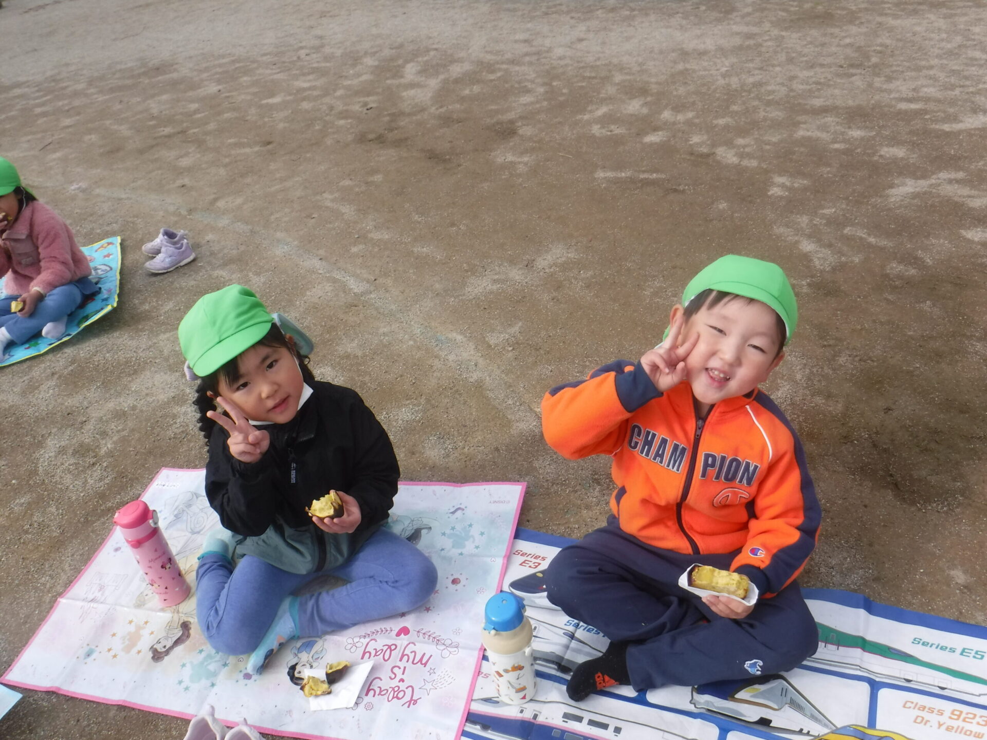 「こんなに大きいよ」 「わたしの方が大きいよ」と比べ合ったり、「ここにまだありそうだよ!」 「一緒に掘ってみよう」と協力し合っていました。