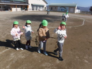 子ども達の盛り上がる声が聞こえるなあと目を向けると誘い合って電車ごっこや綱引きを楽しんでいました。