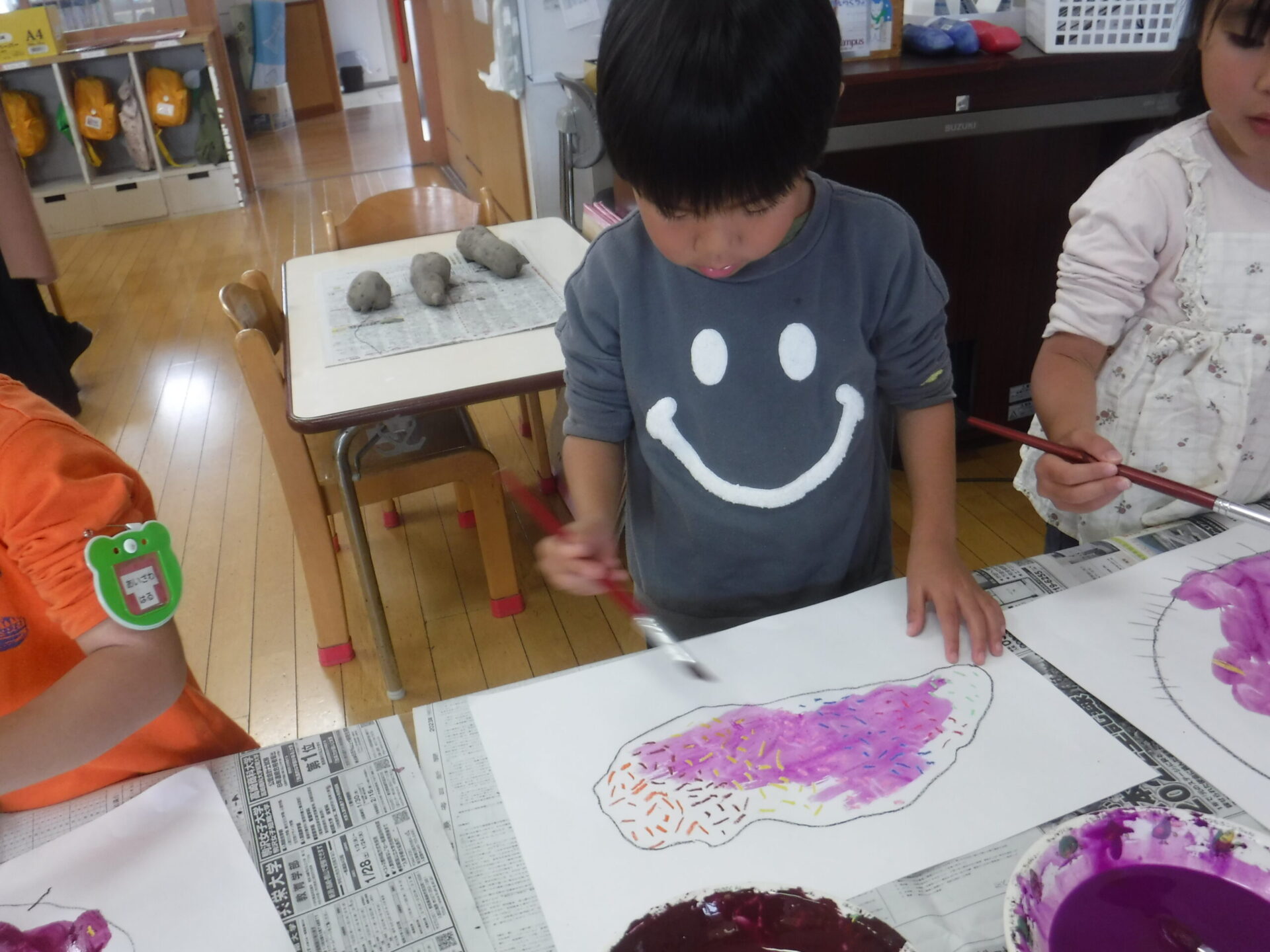 つるで遊んだ後日はさつまいもの絵を描いたり、心待ちにしていたやきいも会を楽しむことができました。