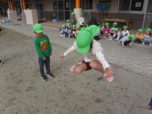 お友だちの前でつる縄とびを披露してくれました。