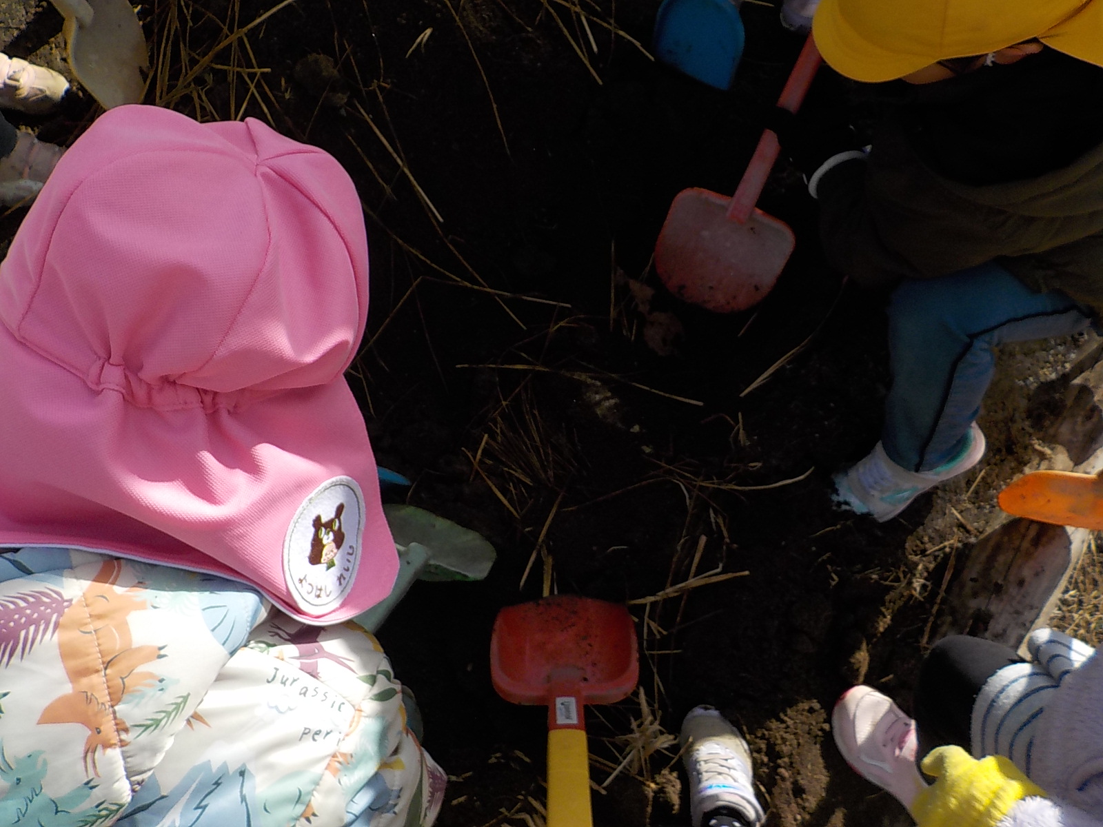 「このへんだったよね。」「もっと掘らなきゃダメかなぁ?」