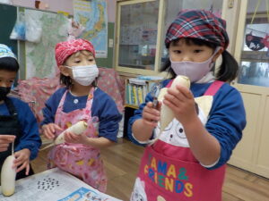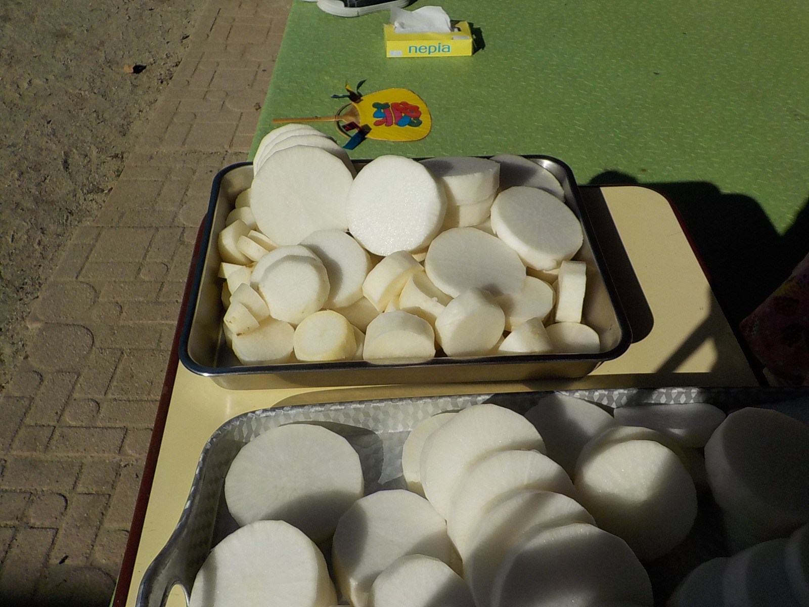 ・野菜などが取れなくなる冬場に、土の中で寝かせたり干して乾かしたりすることで長く保存できるようにして、食べものを無駄にせず大切にすることや、乾燥させることで栄養価もうまみも増すことなど昔の人の知恵を子ども達にも伝え、あらためて食べることへの感謝の気持ちを持てるようにしたいと思います。
