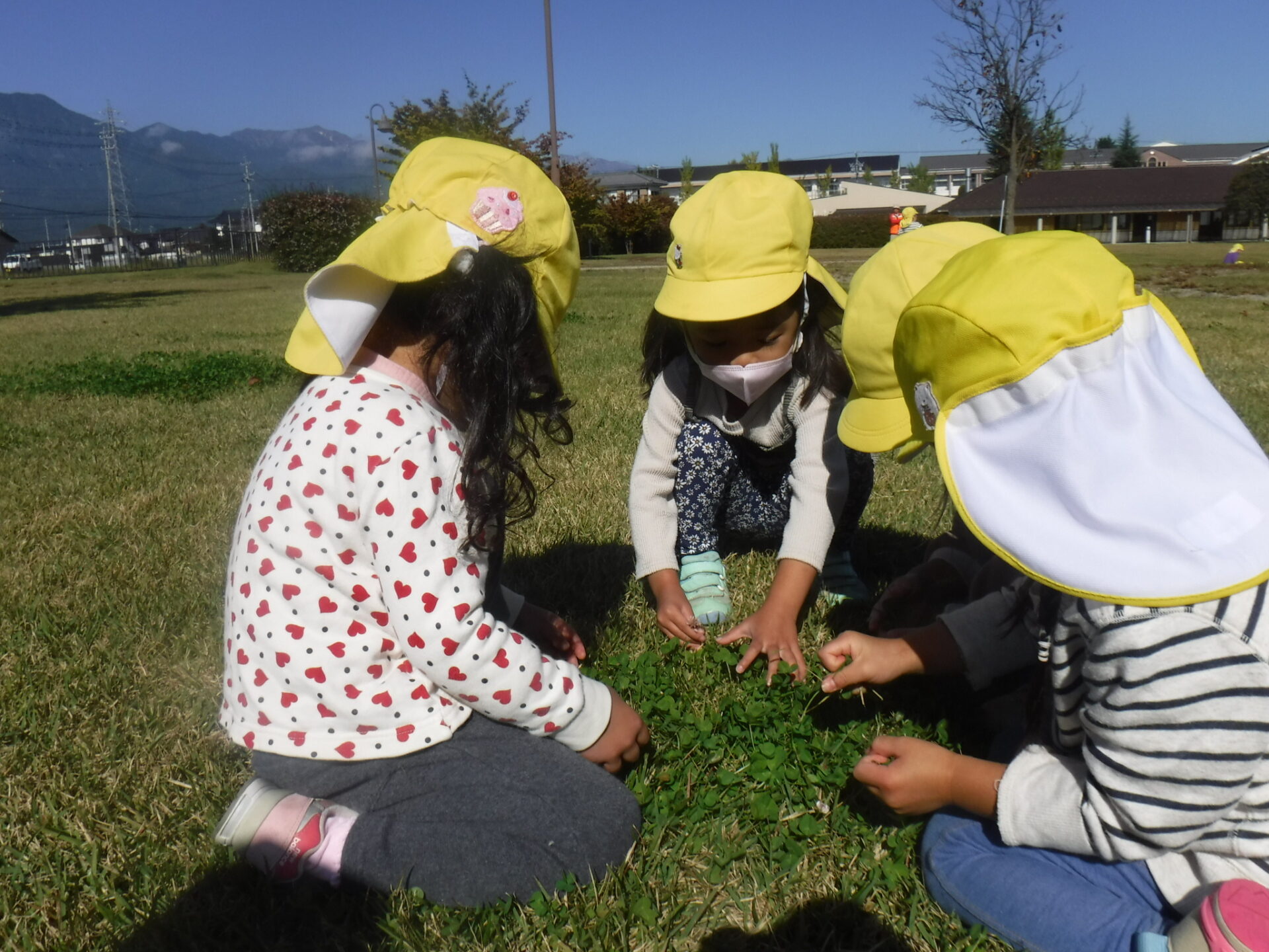 クローバーがたくさんあるよ。 4つ葉のクローバーあるかな。