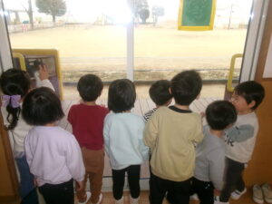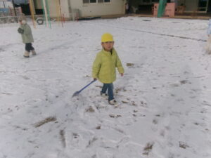 夕方やみかけてしまった雪にドキドキしながら降園していった子どもたちでした…。