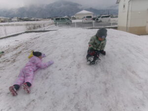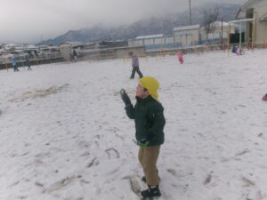 ここのところほとんど降っていなかった雪に子どもたちは大興奮。
