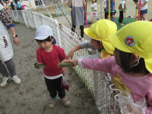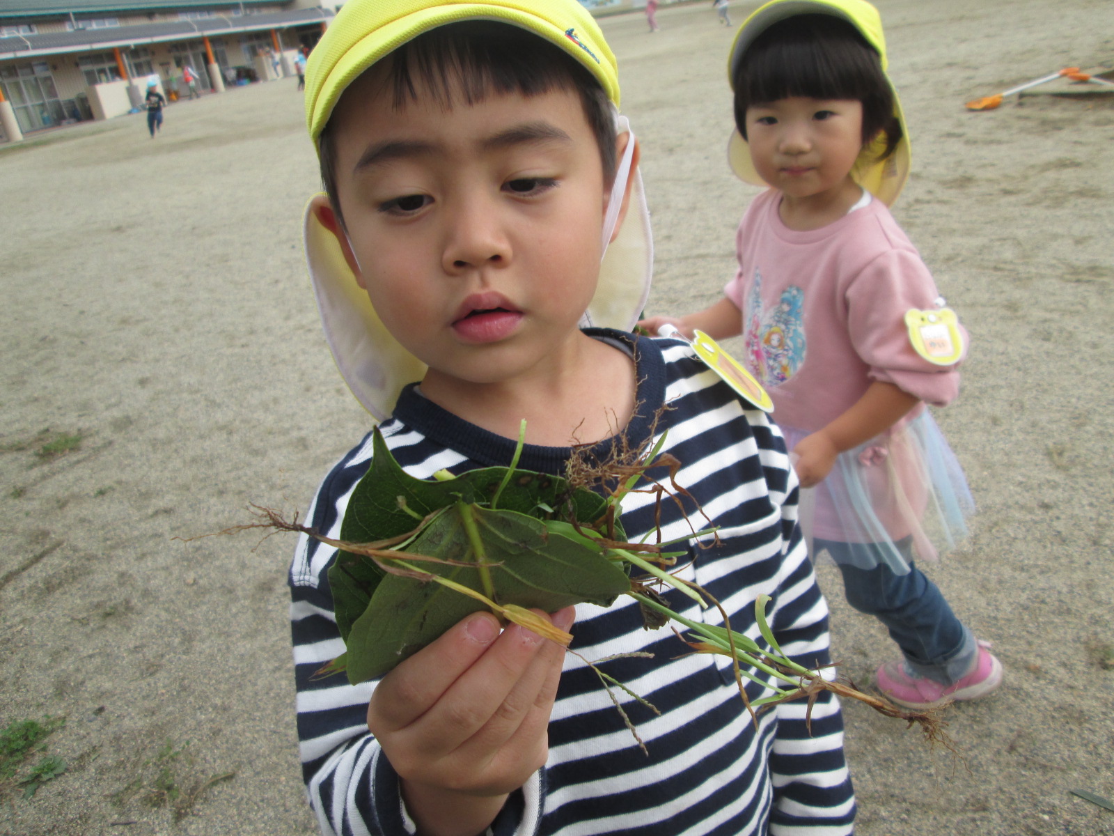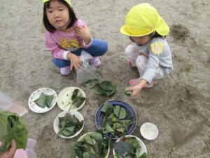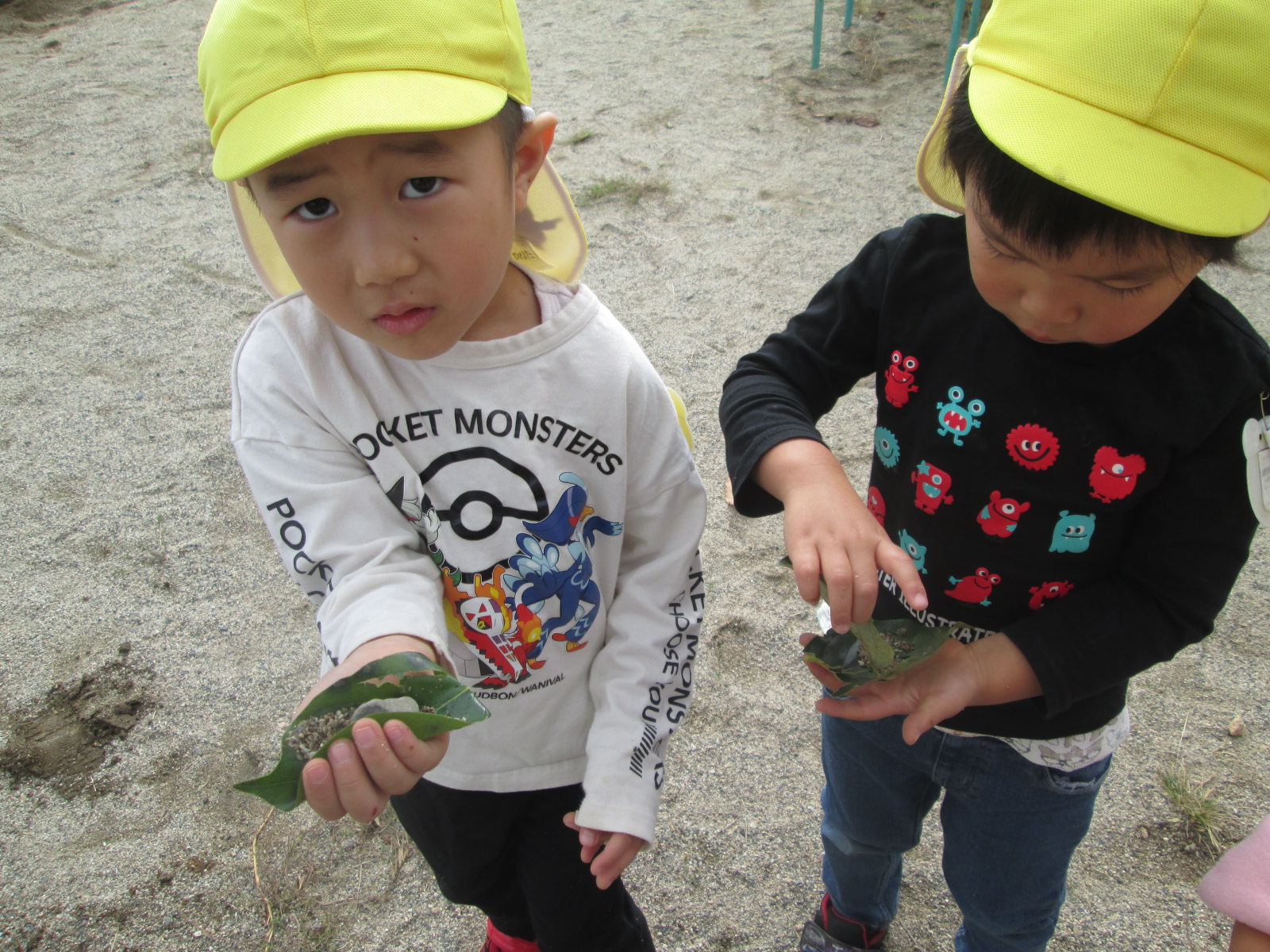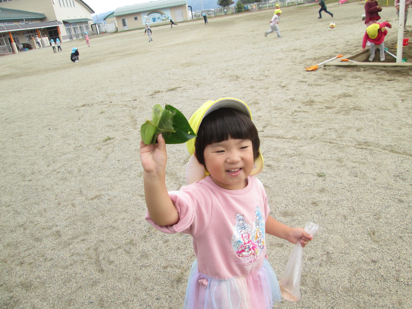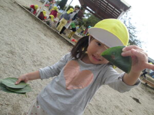 「葉っぱもらっていい?」 「きれいなのあつめよう」