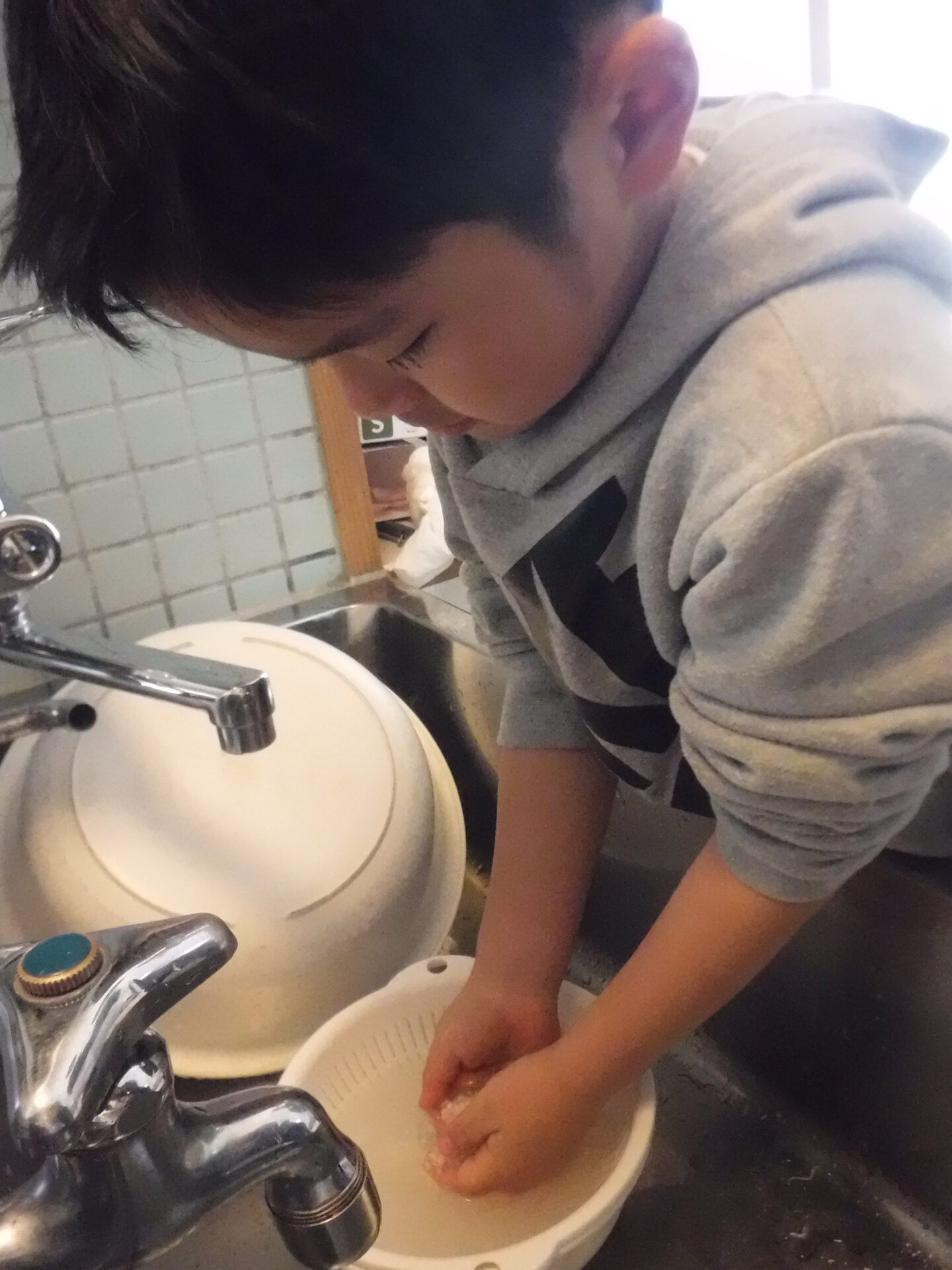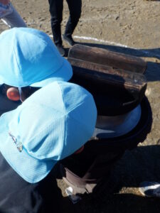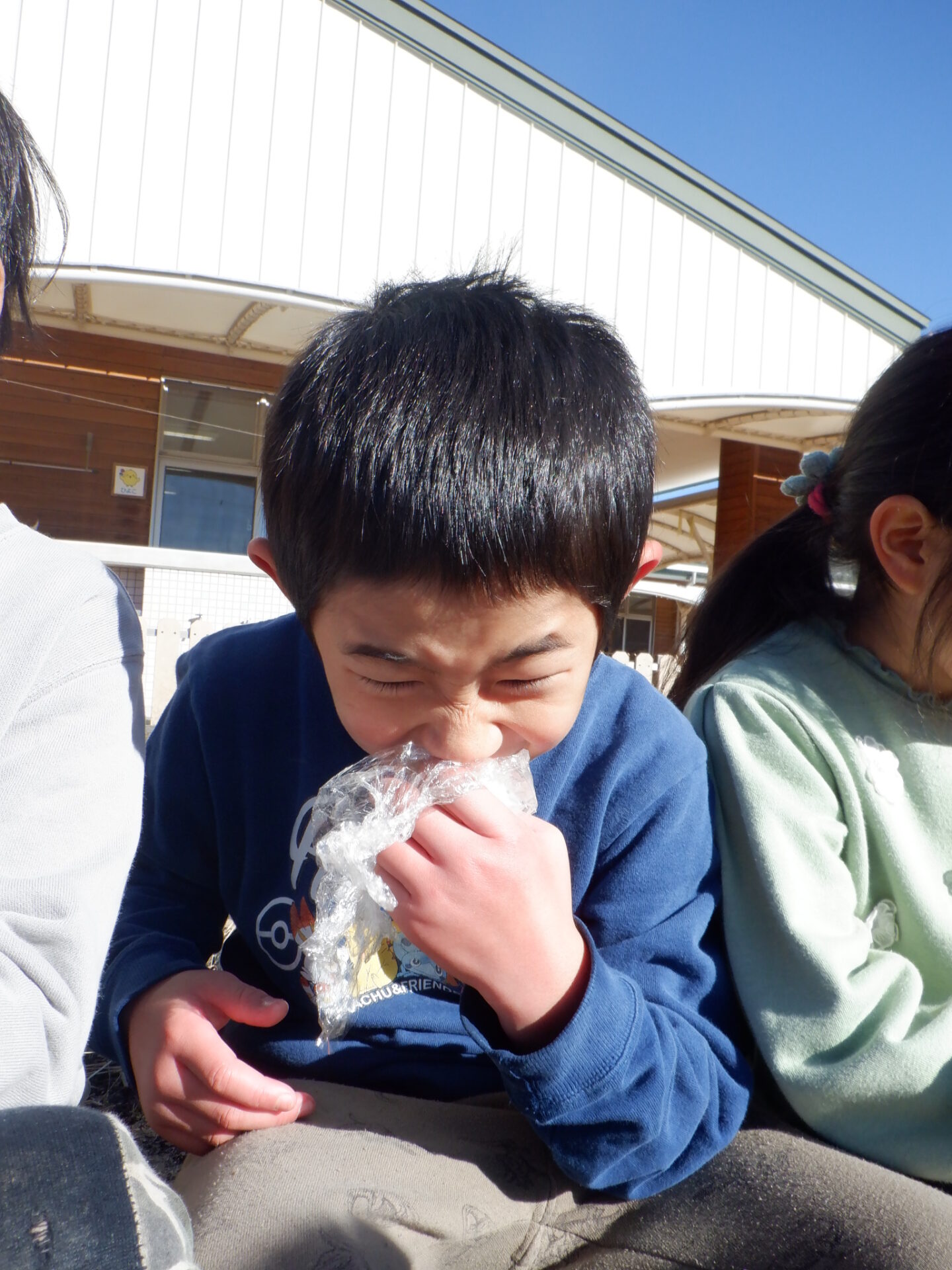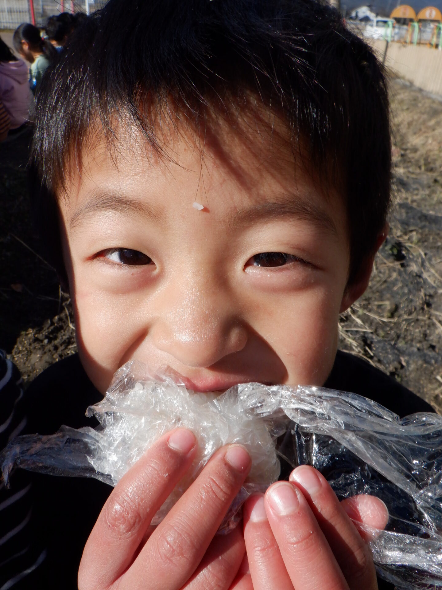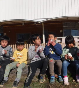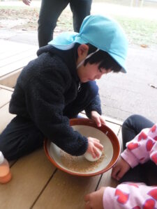 焚けたごはんは小さいお友だちにもおすそわけ。年長さんすごいね。ありがと〜〜。
