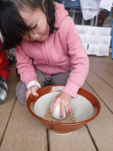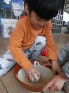「みんなもみをくどにいれるよ〜」