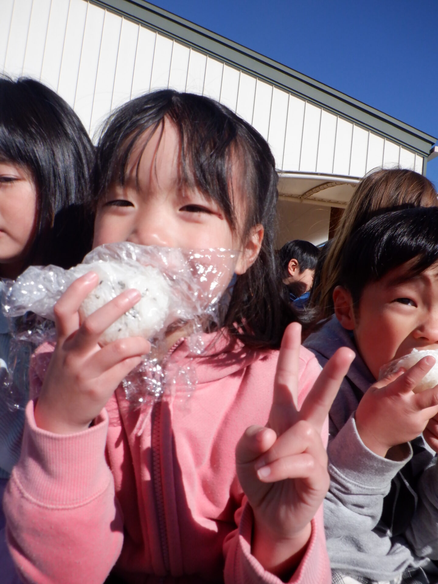これで食べれるね。「おにぎりがいい!」「さけ入れたい」「私はごま塩がいい」