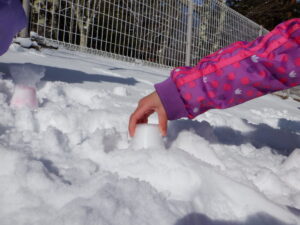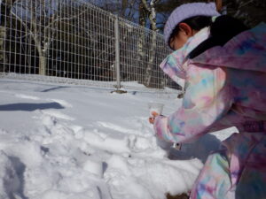 今年はなかなか雪が積もらず、「まだかなまだかな」とみんなで待っていた雪。何をして遊ぼうか期待を膨らませていた分、友達と一緒に色んな気づきをしながら思いきり楽しく遊ぶことができました。冬の自然の面白さを味わいながら、寒くても元気いっぱいたくさん遊んでほしいな!と思います。