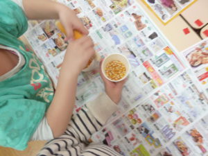 どうすれば上手に粒をとれるのか、粒をこぼさないようにするにはどうすればよいか考え工夫をした子もたくさんいたと思います。