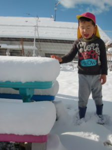 さすがに戸隠の子どもたちは、雪が降ると、スキーウェアと長靴で身支度もきちんとして、登園してきます。