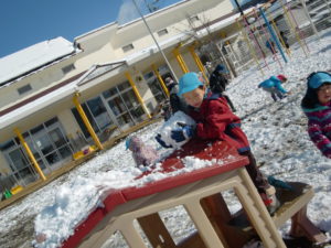 「雪は冷たいけど、寒くないよ!」と、子ども達は元気いっぱい。