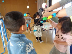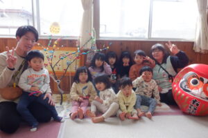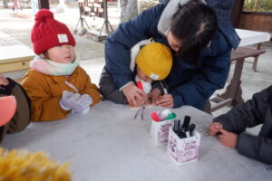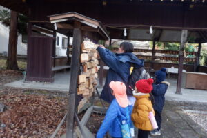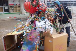 年明け、みんなで作った繭玉や書き初めなどを炊き上げ、1年の健康を願いました。