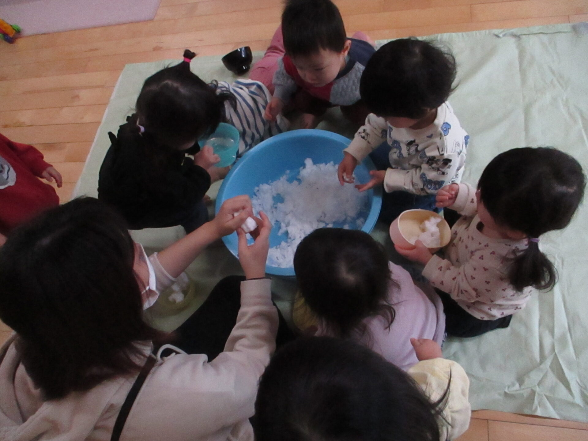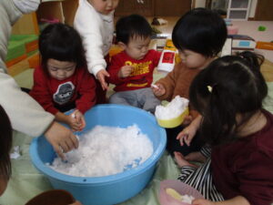 「冷たいね」「ふわふわだね」「白いね」
