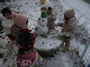 一方では雪だるまを作り始めました。