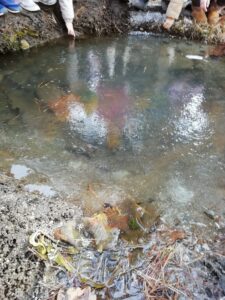 気温が上がっている日中には氷ができないこと、日陰のほうが凍りやすく、溶けにくいことにも気づいたようです。
