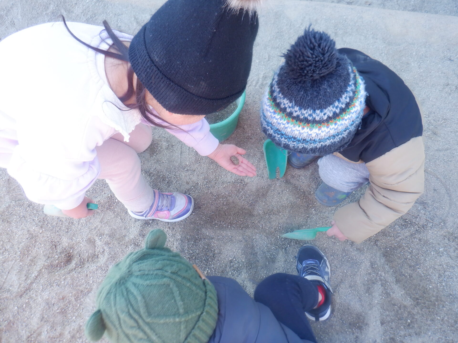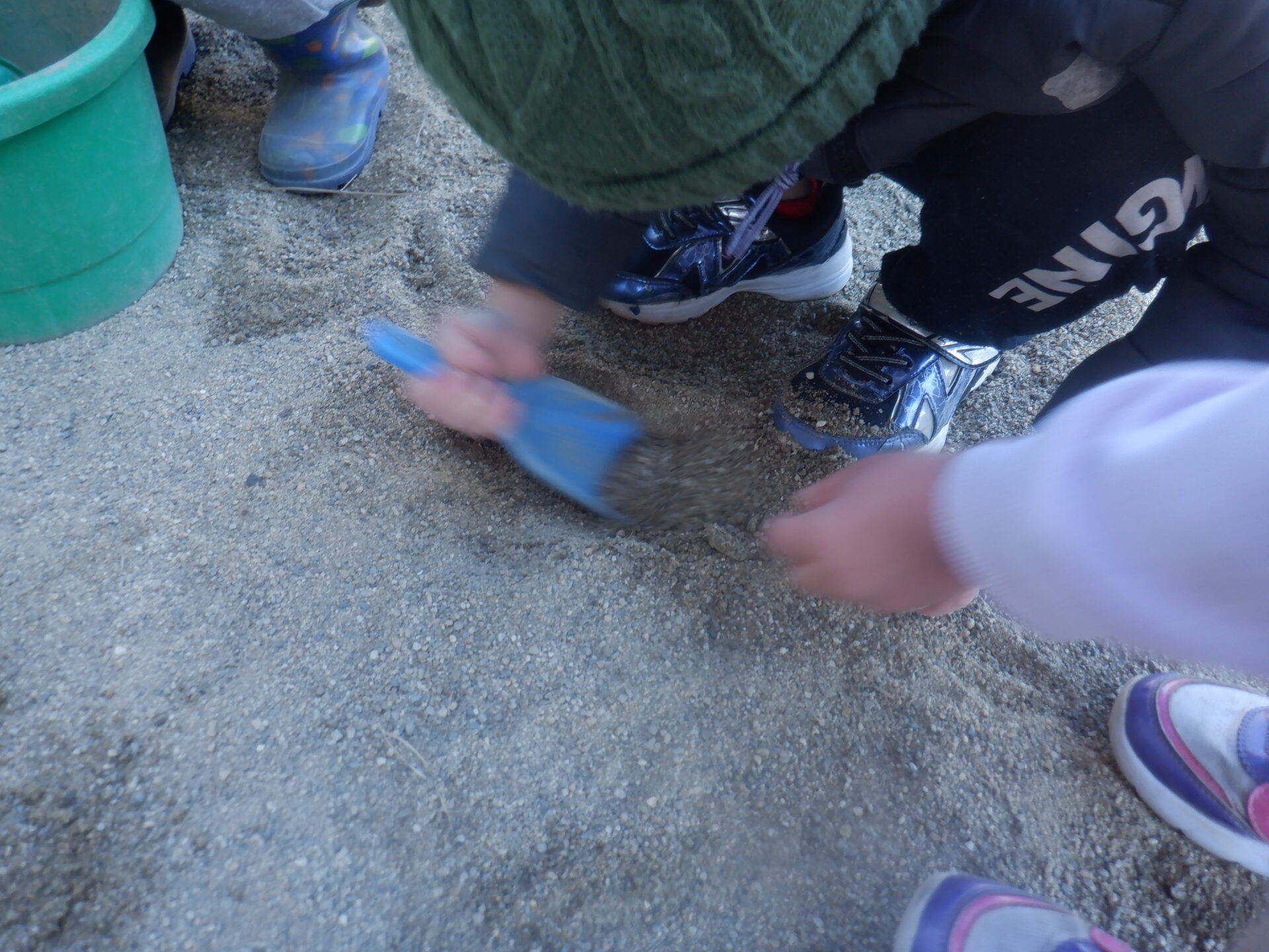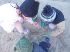 「先生ー!お砂かたいよー!」 「ほら、全然掘れないー」