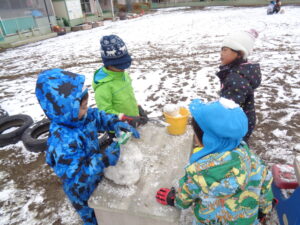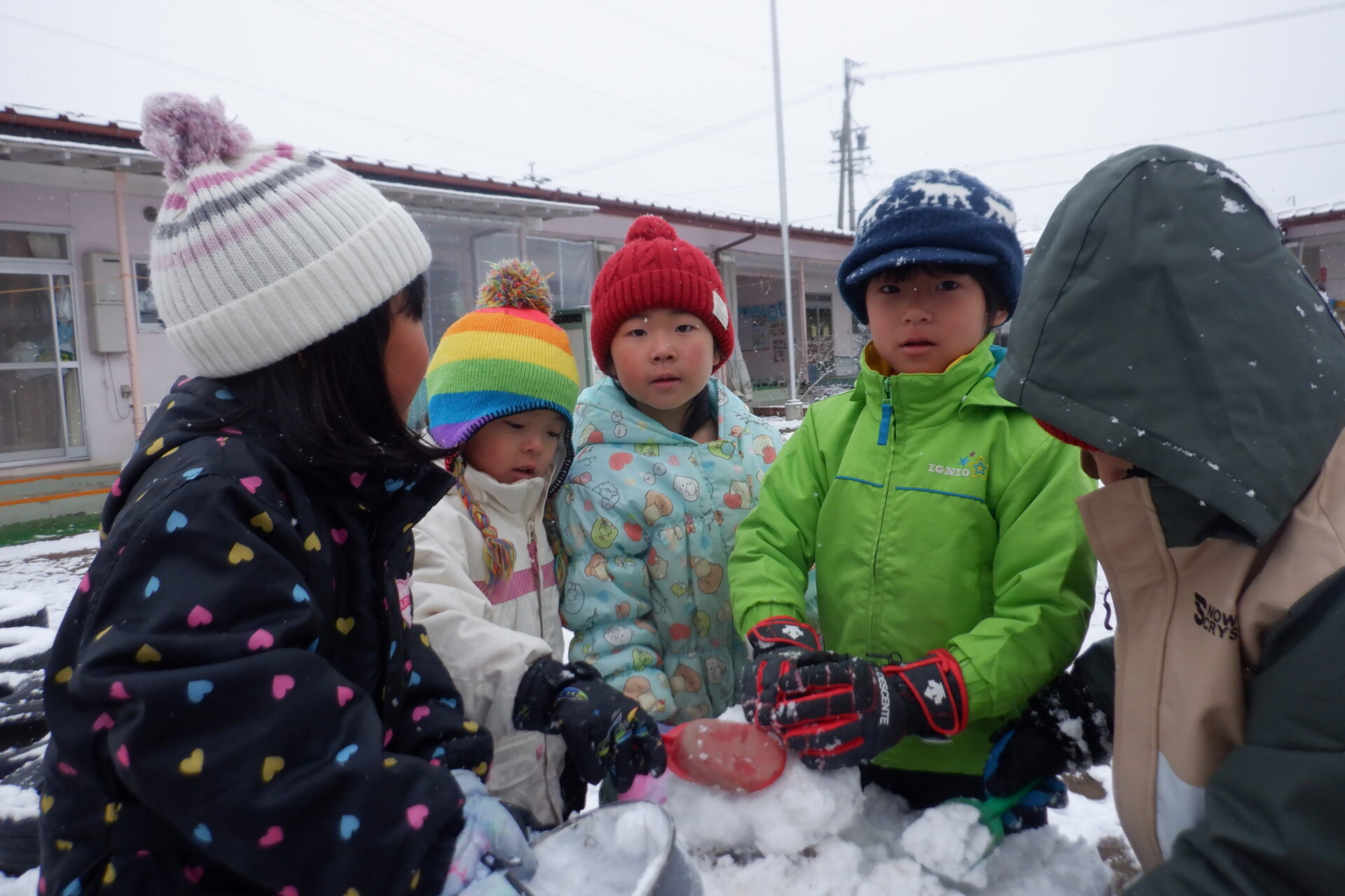 「雪をあつめよう」「お料理にしよう」という言葉にみんなが集まってきました。