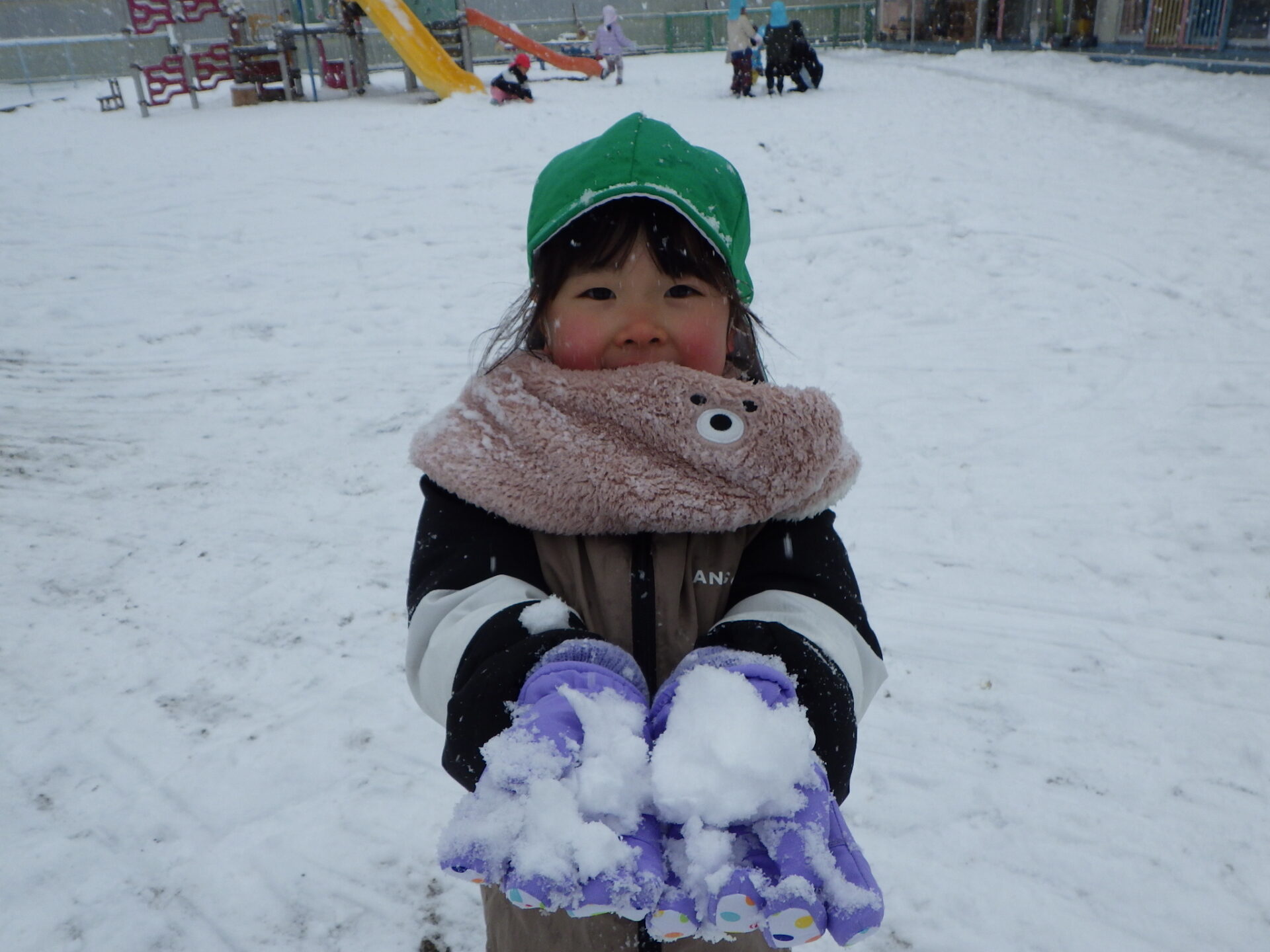 雪が積もると、子どもたちは大喜びで園庭に飛び出して行きました!