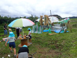 みんなで協力して基地を作り、その基地・キャンプ場(自然の中)で遊ぶ楽しさをたくさんあじわってほしい。